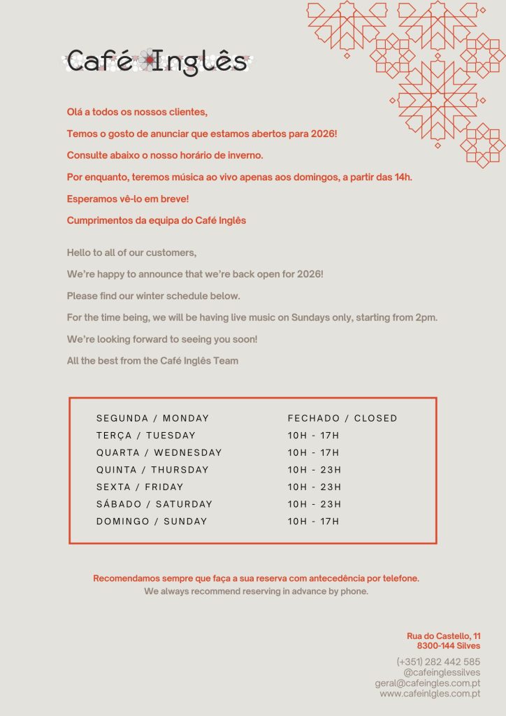 O Café Inglês é mais do que um sítio onde se pode desfrutar de uma deliciosa refeição ou de uma agradável bebida ou se o tempo permitir nas suas várias esplanadas se assim o preferir.